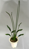 ノンリーフ・ストレリチアのパルビフォリアです。 高さ104cm幅35cm鉢を含むサイズ 7寸鉢です。 スラリと伸びた葉は先端に小さなスプンのような葉をつけます。 実生なので成長するにつれ葉が小さくなります。 まだまだ数は少なく、希少品種です。 直線的なフォルムでインテリアグリーンとしておすすめです。