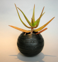 彫刻家の小林晃一さんの作品の地球鉢、何とも言えない漆黒の色合いに独特なオレンジ色の黄星錦は植物の生長の姿はグリーンインテリアと言うよりオブジェになりました。