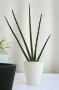 清潔感の白と直線的なマイナスイオンスタイリッシュ!インテリアグリーンおすすめです。 サンスベリア・シュヴィインフェルティー 高さ53cm前後.幅32cm前後 鉢カバーを含むサイズです。 インテリア性のあるパウダーストーンの鉢カバーです。 管理方法はこれからの時期は1ヶ月に1回から2回の水やりで大丈夫です。