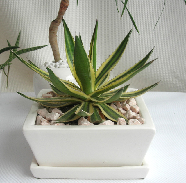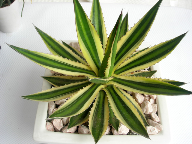 アガベ・五色万代 四角鉢植え